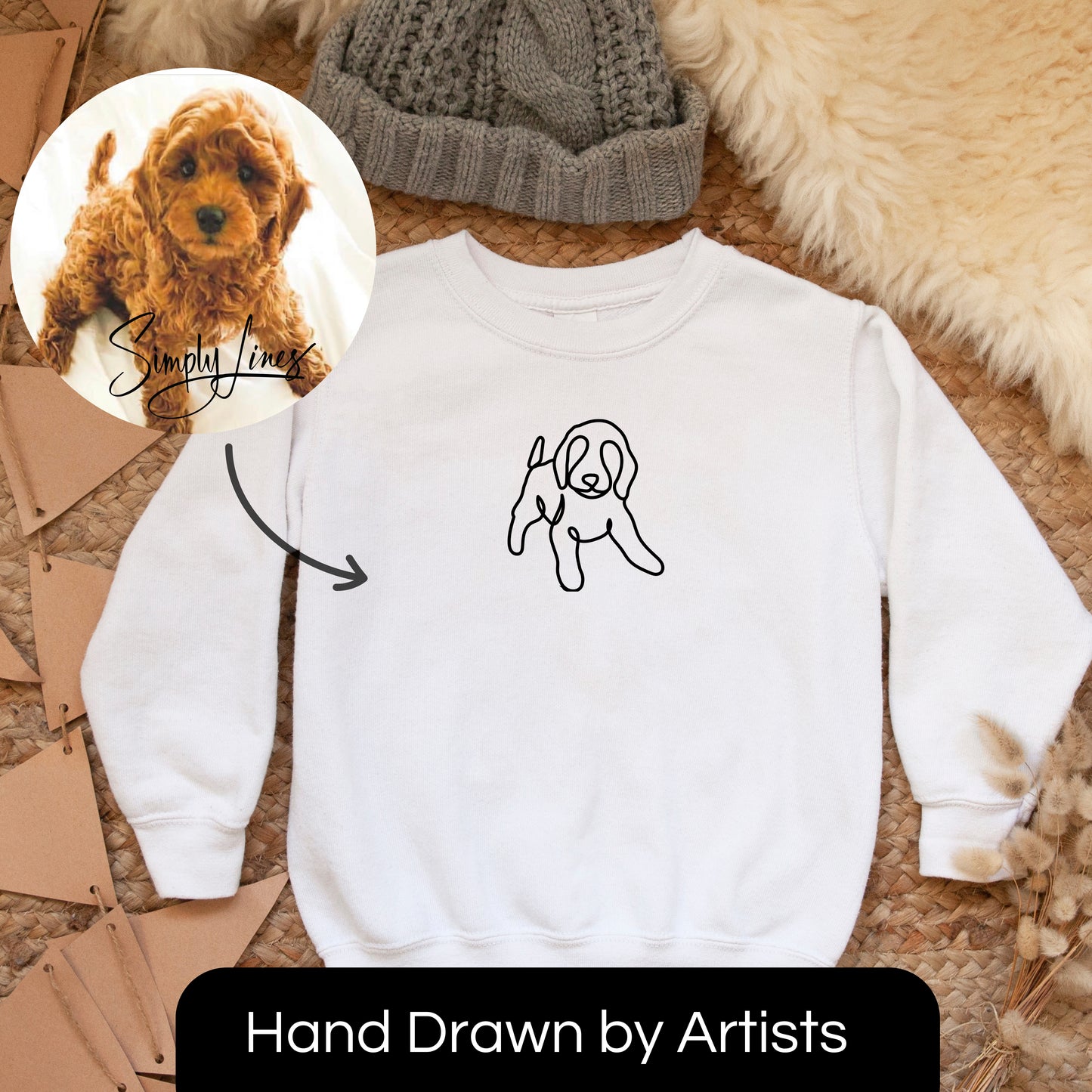 Select your preferred product, choose the colors and sizes, and upload the photo you'd like our artists to transform into a customized artline design.